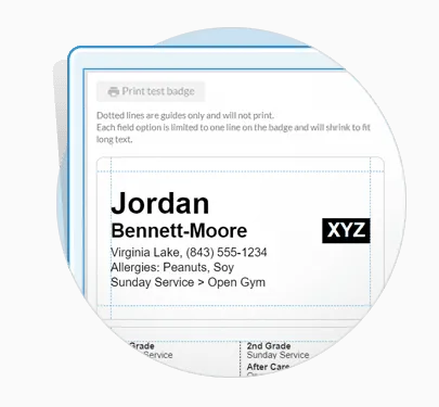Check-In puts security at the forefront for your children’s ministry. Customize badges and add a Security ID to match parents with their children so no one else can pick the child up from your ministry events. Also make critical information, such as allergies, medical needs, and emergency contact information, visible for each child on their badge.
